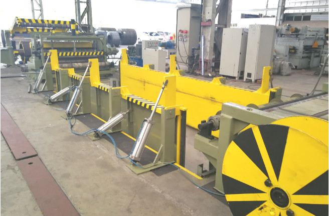 Çelik bobin yükleme, çelik bobini çözme, plakayı kesme ve geri sarma ünitesi ve boşaltma.