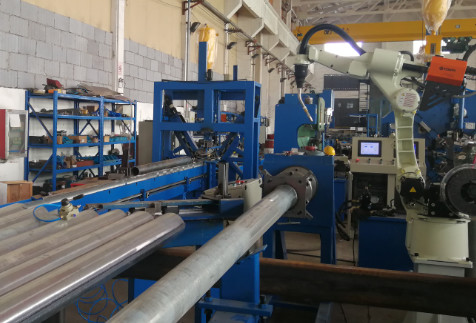 Işık direği taban plakası kaynak üretimi için kaynak sistemi uygulanır.Farklı kaynak pozisyonlarına göre robot ve kaynak gücü arasında gerçek zamanlı iletişim ile kaliteli kaynak dikişi elde etmek,