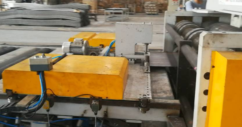 Hem dolly'de hem de soğuktaKenar kesme ünitesi, düzgen plakanın doğru boyutunu almak için basmak plaka durdurmak için pnevmatik cihaz vardır.