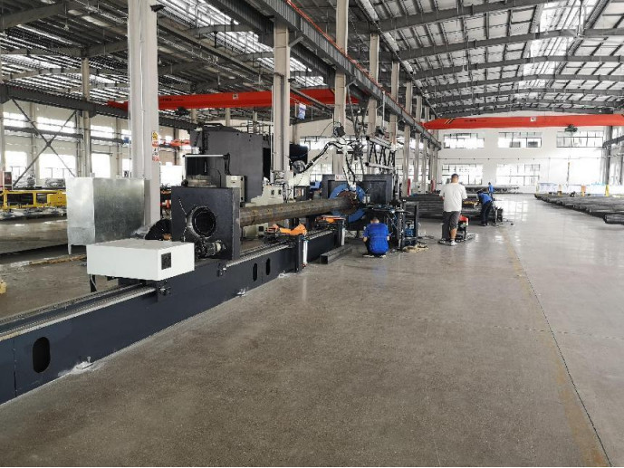 İlk olarak, direk taban plakasının iç ve dış çevresel dikişi kaynaklanır ve ardından taban plakasının takviye nervürü otomatik olarak kaynaklanır.